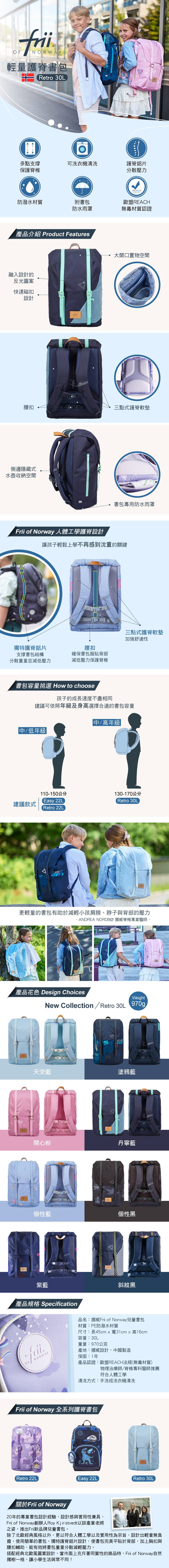 Frii of Norway 輕量護脊書包Retro 30L-天空藍