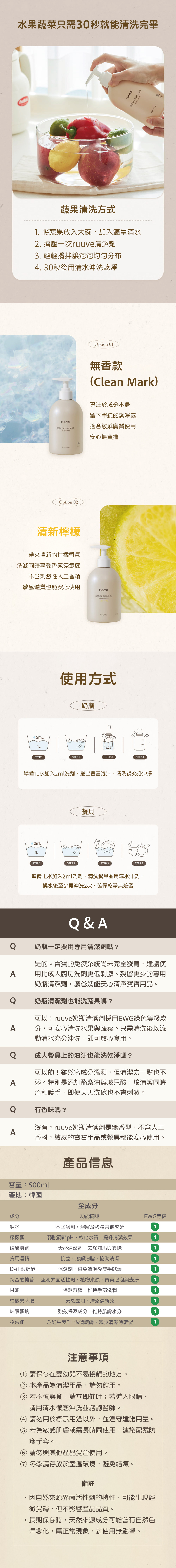 - 植物來源清潔成分製成,適合洗淨從水果、蔬菜到料理器具的廚房用品